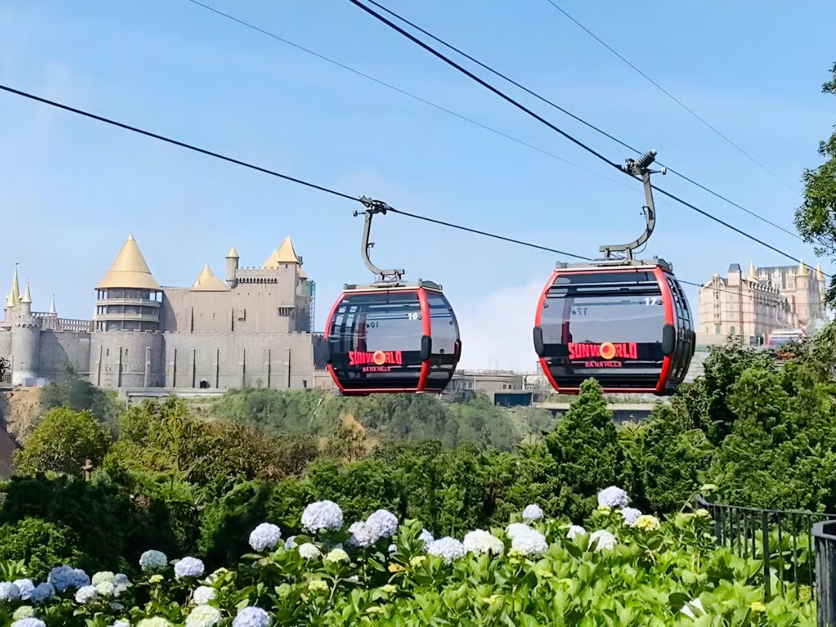 After finishing the first cable car, you will visit The Golden Bridge – which has the most exotic structure and also the world’s most prominent pedestrian bridges highlighted by the British Guard newspaper, Le Jardin D’amourn (consists of 9 gardens), Linh Ung pagoda.