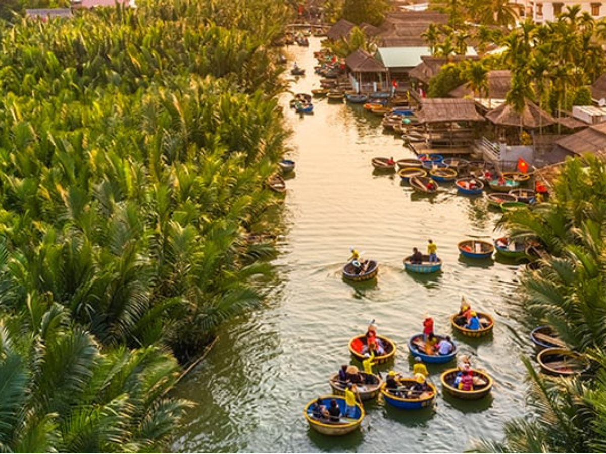 1:00 pm: Start your adventure with Cam Thanh Coconut for being a fisherman at Cam Thanh Coconut Village, you will experience about learning traditional fishing techniques and how to row unique Vietnamese bamboo basket boats while exploring the tranquil coconut palm waterways of the past war. On this tour, we provide authentic social and cultural insight into the local way of life in Vietnam. Furthermore, you will take part in some hands-on activities which are fun, safe, and interested are suitable for everybody.