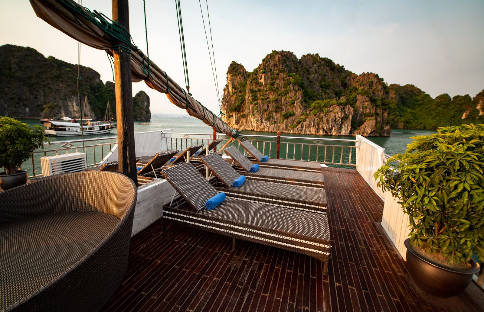 Built-in July 2015, hard Renovated 2023, this ship shows its luxurious facility and comfort with the combination of local excellent timber and marble with copper while still keep the outlook charming of the traditional fishing oriented design. She has 14 crew members with friendly, enthusiastic manners and experiences will ensure to make your trip specials.
