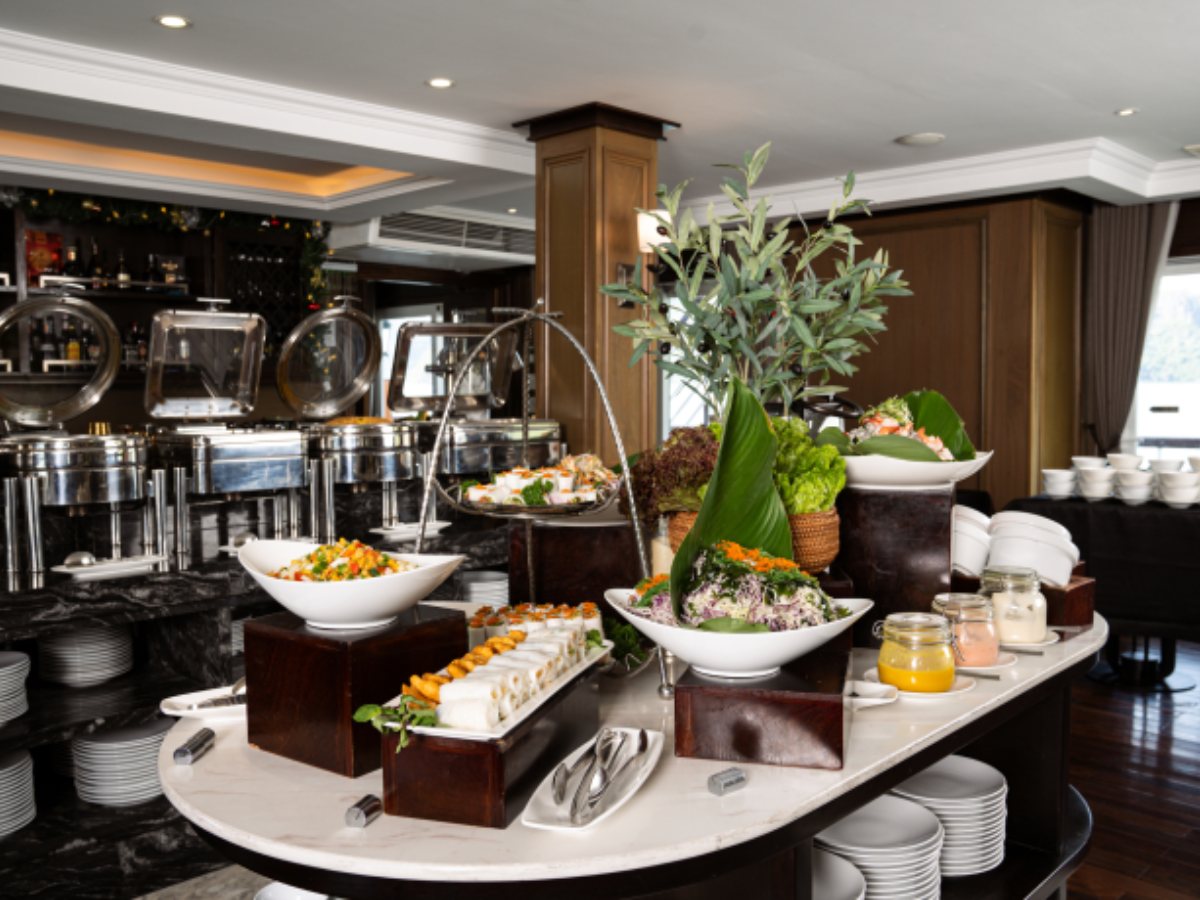 Savor a premium Michelin-standard dinner on the sundeck (depends on weather conditions) whilst being serenaded with live band music (the band is off on Mondays).