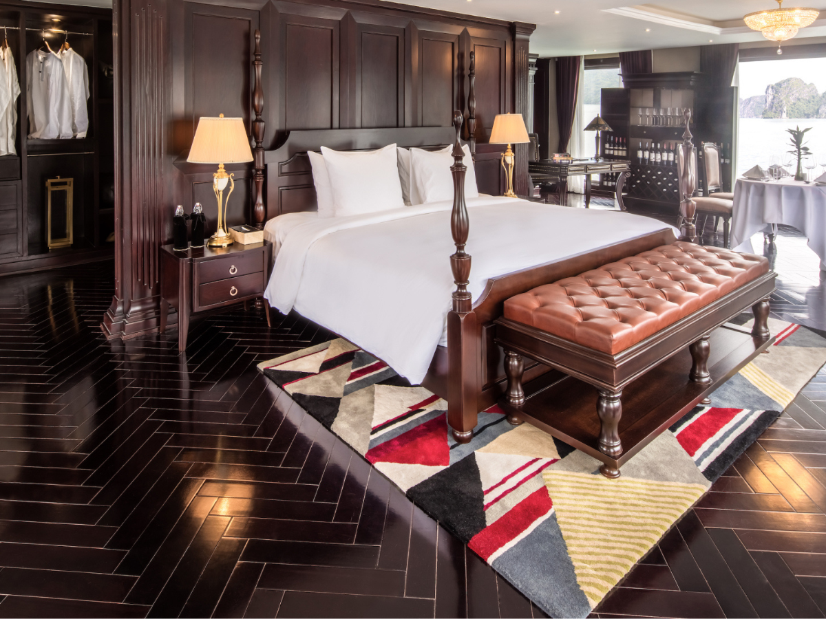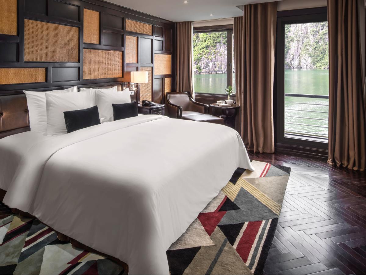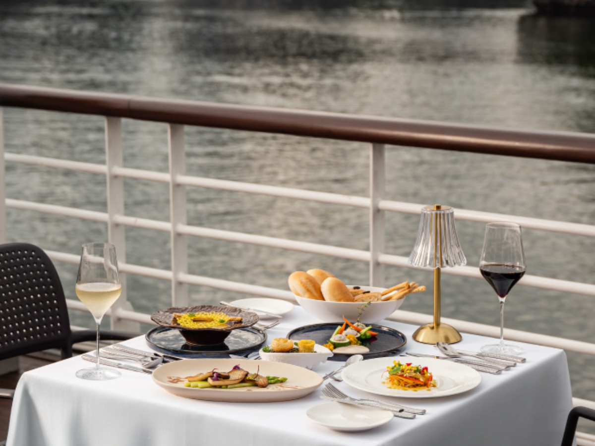 Savor a delicious lunch whilst enjoying the majestic views of Halong Bay’s islands and islets.