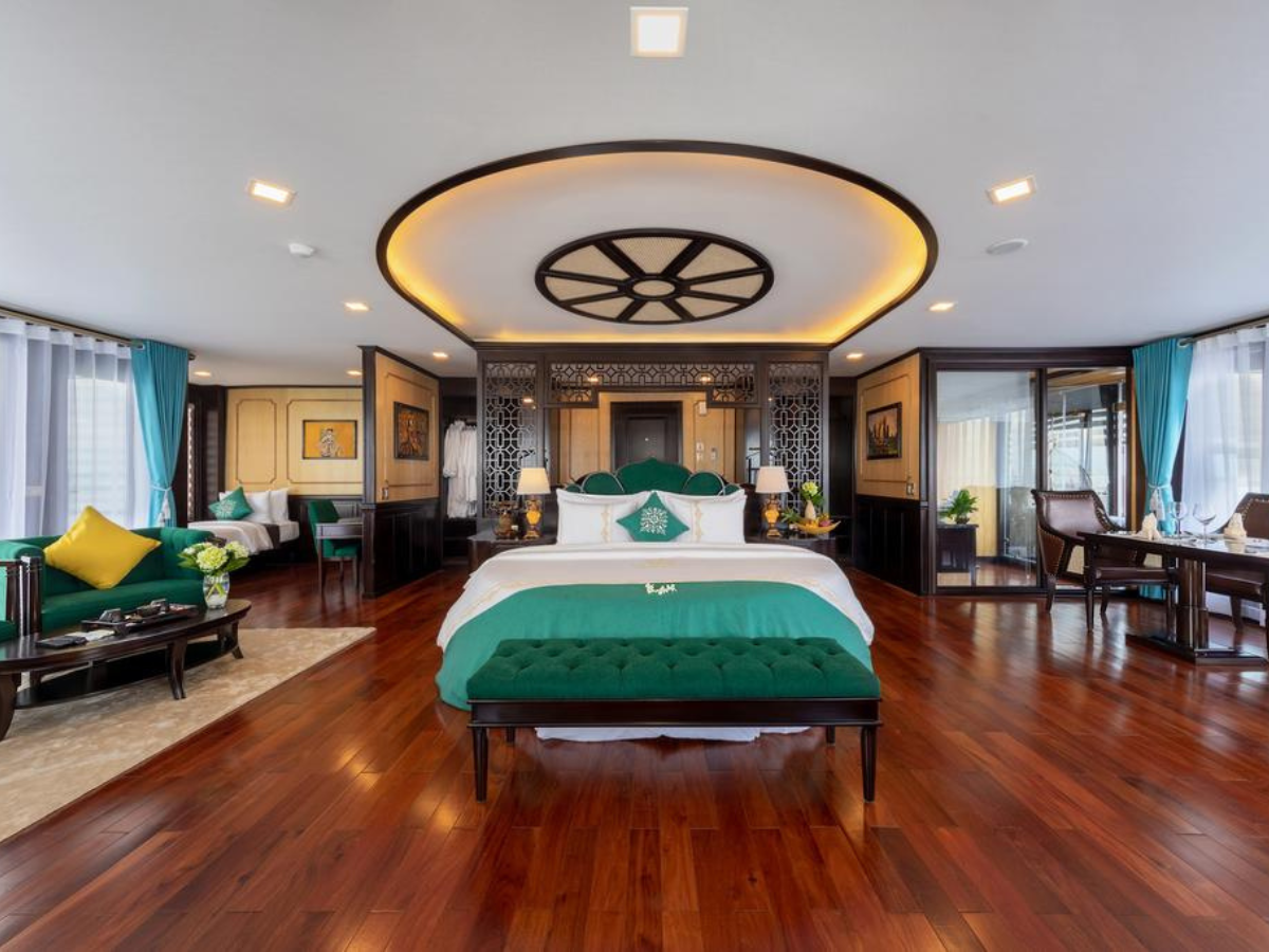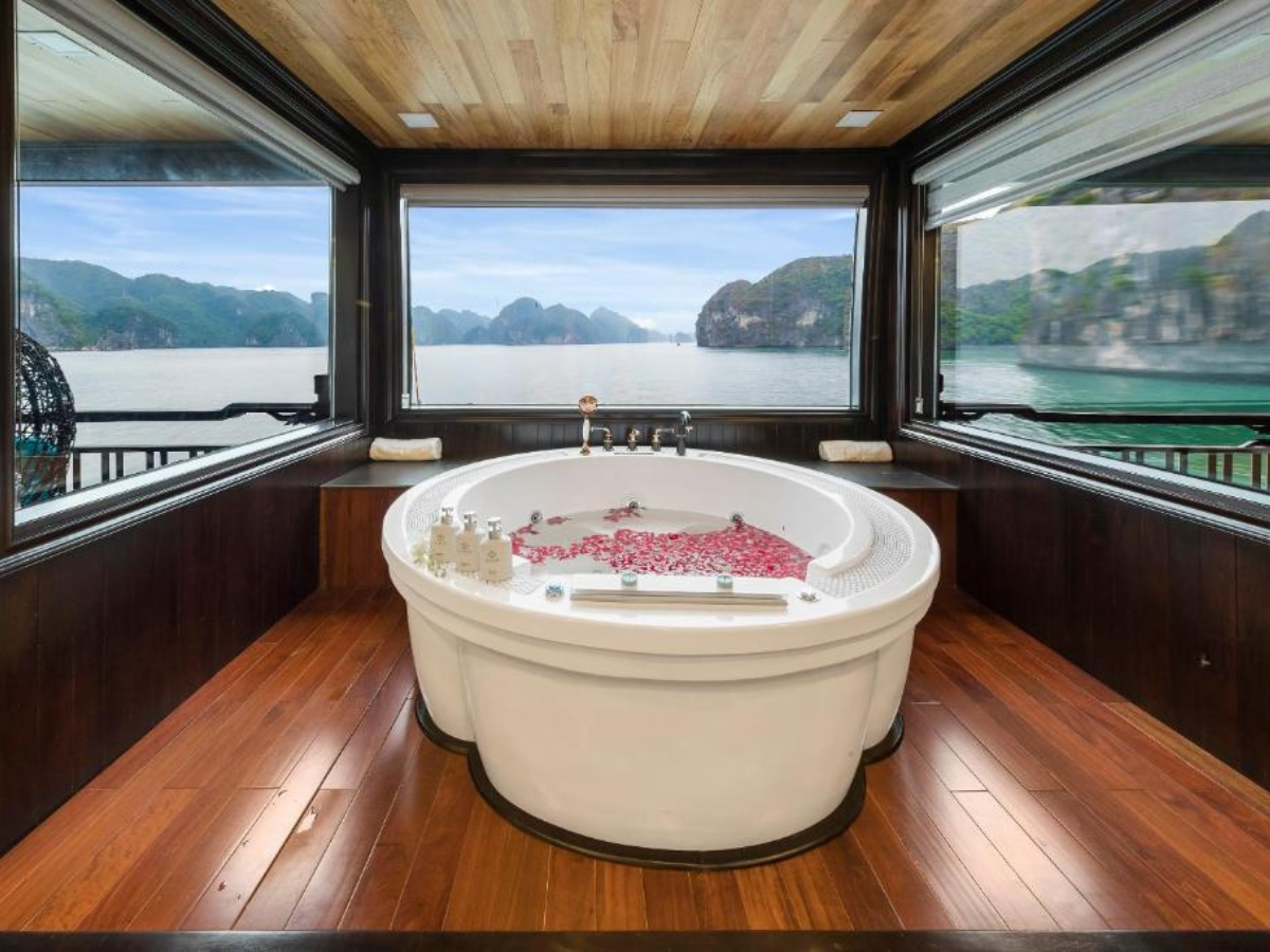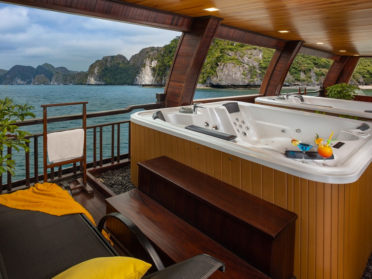 Elegantly designed, the ship features spacious sundecks across two floors with a total area of 324 sqm and 250 sqm, affording 360-degree vistas of Halong Bay and its myriad limestone karsts. Two restaurants, two bars, an entertainment area for live music, and the large open-air Jacuzzi are among the 39-cabin vessel’s top-notch facilities. The five-metre […]