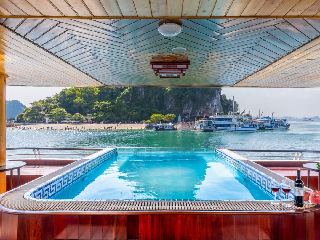 Elegantly designed, the ship features spacious sundecks across two floors with a total area of 324 sqm and 250 sqm, affording 360-degree vistas of Halong Bay and its myriad limestone karsts. Two restaurants, two bars, an entertainment area for live music, and the large open-air Jacuzzi are among the 39-cabin vessel’s top-notch facilities. The five-metre […]