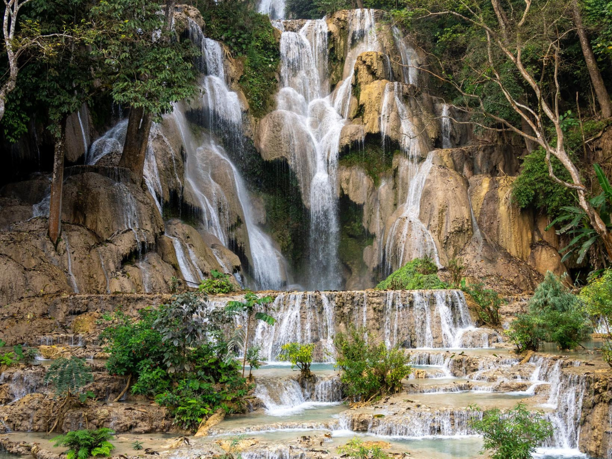 Today, we cross the Mekong River by boat to the picturesque village of Ban Chan, a pottery village. We then visit the morning Phousi Market, where you will see such diverse offerings as dried buffalo skin, local tea, and saltpeter among the chickens, vegetables, and hill-tribe weavings. Laos is also known for its traditional crafts, and today you will visit local villages of Lao ethnic minority groups at Ban Ouay, a Hmong village, Ban Ou, a Laoloum village, and Ban Thapene, a Khmu village. This then takes us to the beautiful Kuang Si Waterfall, where you can cool off with a refreshing swim in the pools or walk along the forest trails. We then return to Luang Prabang by late afternoon.