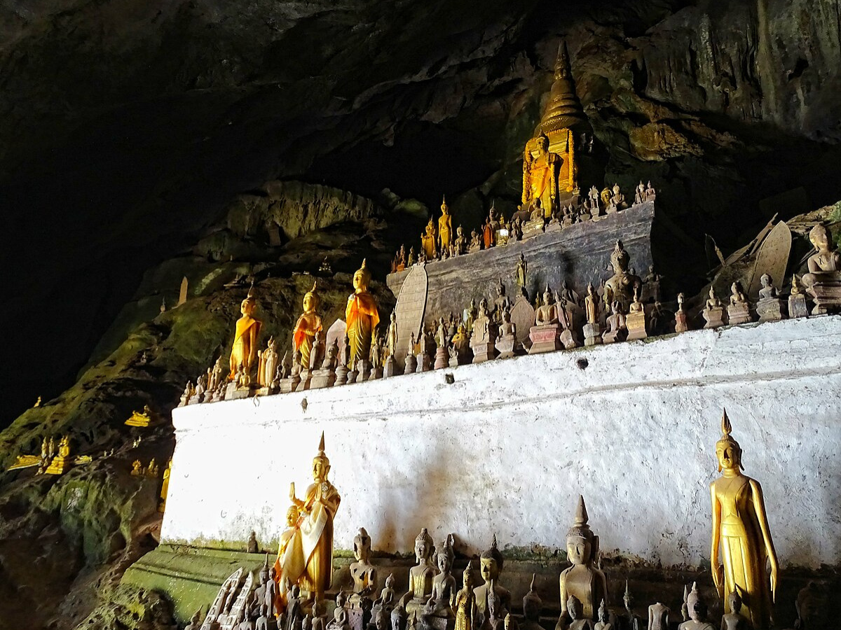 The day starts with a visit to the Big Brother Mouse shop to select some books for the village visit. We then head north by car along Route 13, before taking an unpaved road to Ban Khia Luang village. We then have ample time to visit the school, play with the kids, and watch them enjoy their new books. We also take some time to explore the rest of the village, where you can see weaving and visit the local temple. We stop for lunch at the village, which can either be a western picnic lunch, or traditional Lao food such as sticky rice, laap, and fresh vegetables cooked by the villagers. After lunch, we say goodbye to the village and drive to Ban Khoklin, which takes us through some beautiful scenery of mountains and paddy fields. At Ban Khoklin, we then board a private boat down the Nam Ou River for 30 minutes to Pak Ou Caves, two linked caves crammed with thousands of gold lacquered Buddha statues of various shapes and sizes left by pilgrims and continue down the Mekong River back to Luang Prabang, arriving back there by late afternoon.