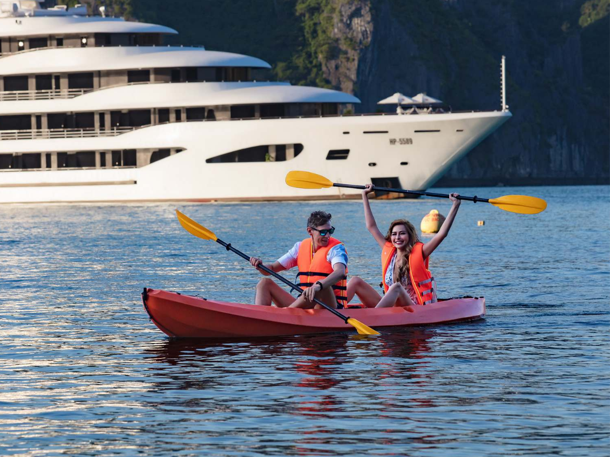 15:00: Arrive at Sang Cave by kayaking or rowing boat as the path towards the cave is 70m long of water. On the way, guests will be amazed by sparkling karst arcs through sunlight. Afterwards, guests are invited to enter Ech Lagoon, an extremely serene and emerald spot to kayak and swim. It’ll be a wonderful chance to immerse yourself in one of the most remote parts of Lan Ha Bay. The shape of this lagoon looks like a giant frog resting, hence it explains the name “Ao Ếch” in Vietnamese.
