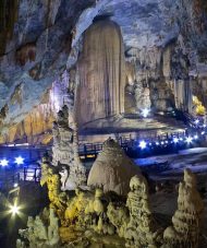 Conquer 500 steps to reach the entrance of Paradise Cave, then explore its vast interior along a 1,000-meter wooden walkway. Continue with a boat ride through the underground river of Phong Nha Cave.