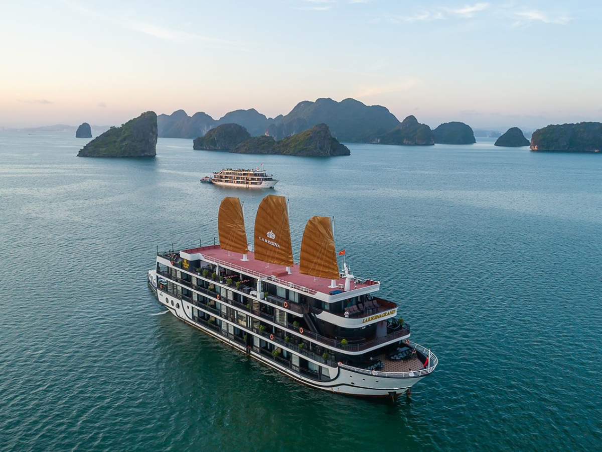 Ambassador Overnight Cruise stands as the most spacious luxury overnight cruise in Halong Bay, presenting 46 lavish cabins that come complete with personal balconies or terraces. Complemented by twin panoramic sundecks, an upscale dining venue, a melodious piano lounge, bars, an outdoor Jacuzzi pool, and a rejuvenating spa, the cruise assures a comprehensive experience.